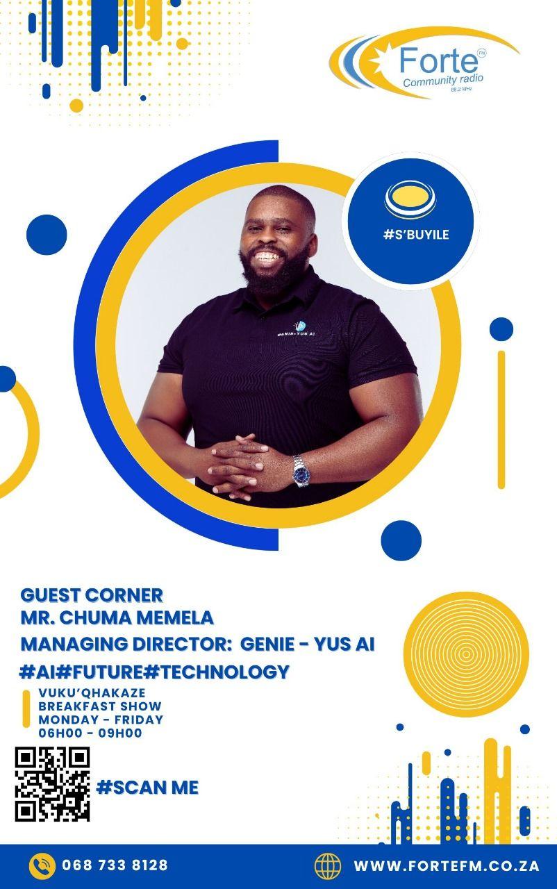 I had the privilege of joining Forte Community Radio on the Vuku’Qhakaze Breakfast Show as a guest on their Guest Corner segment. During the conversation, I shared insights on artificial intelligence, the future of technology, and the role AI can play in reshaping everyday life and business. The discussion highlighted how AI is shaping opportunities and challenges across industries, and why embracing innovation is key for growth.