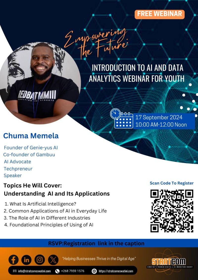 I was invited by StratCom Eswatini to lead a youth-focused webinar titled "Introduction to AI and Data Analytics." The session aimed to empower young people with a deeper understanding of artificial intelligence and its practical applications. I covered the foundations of AI, common uses in everyday life, its role across different industries, and key principles for using AI effectively. The discussion provided youth with accessible insights into how AI is shaping the world of work and the opportunities it creates for future innovators.